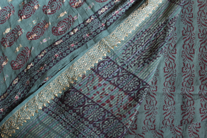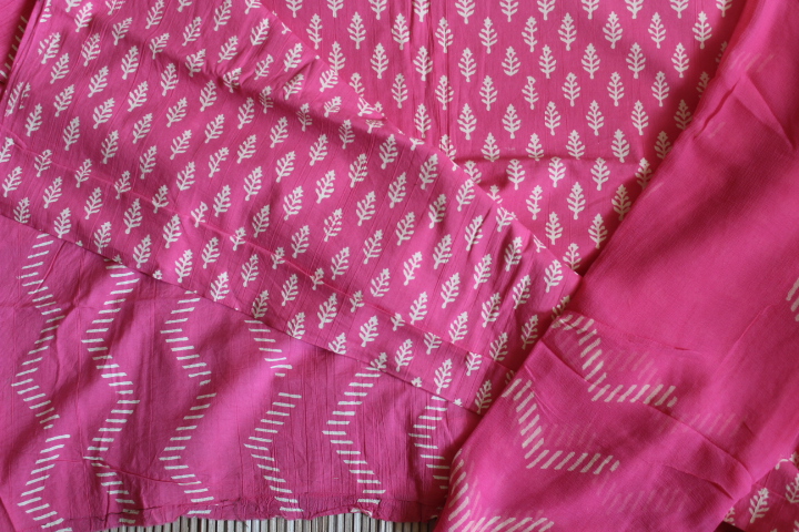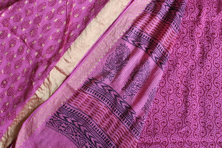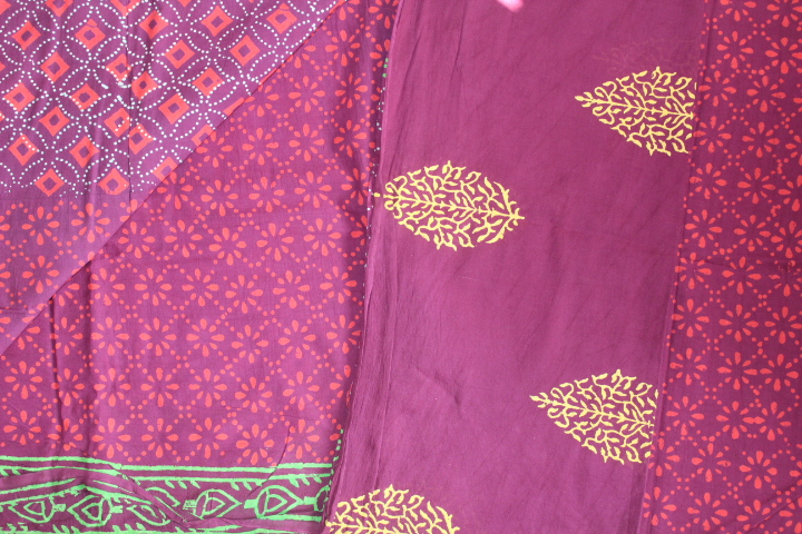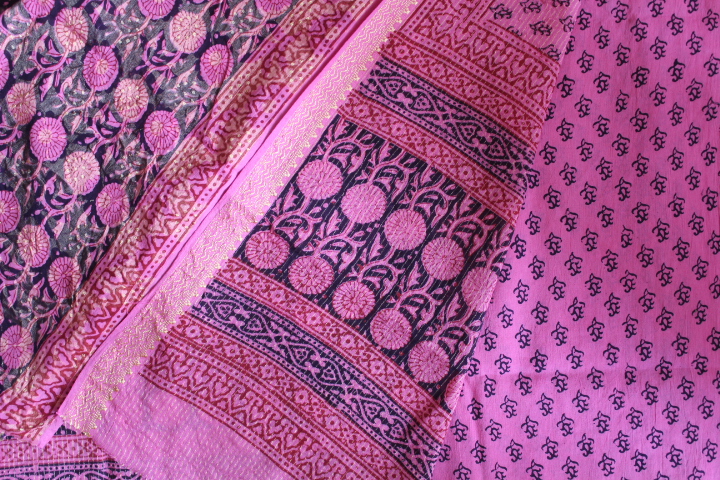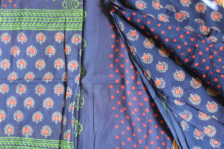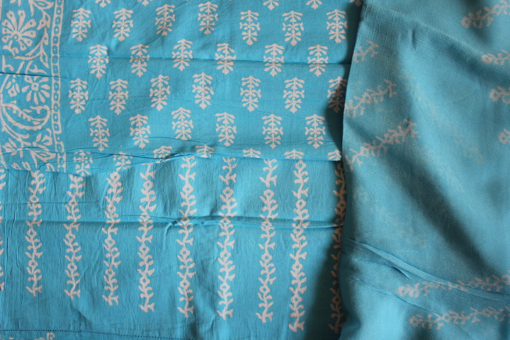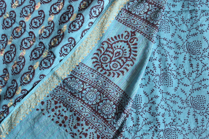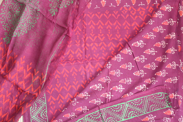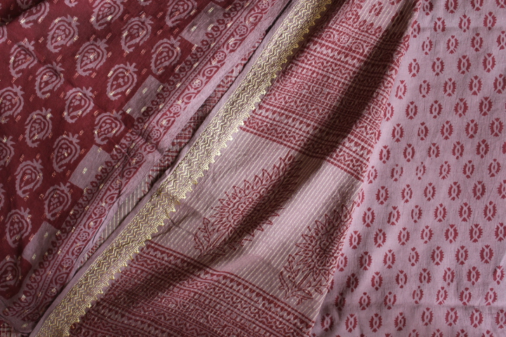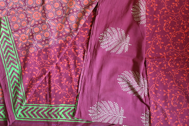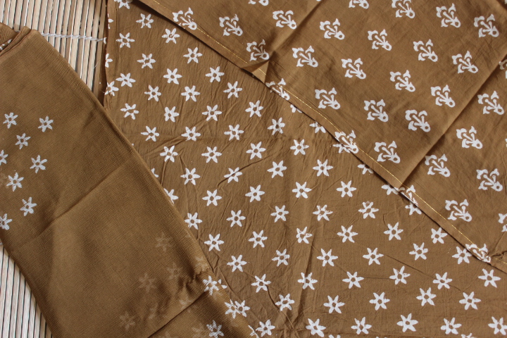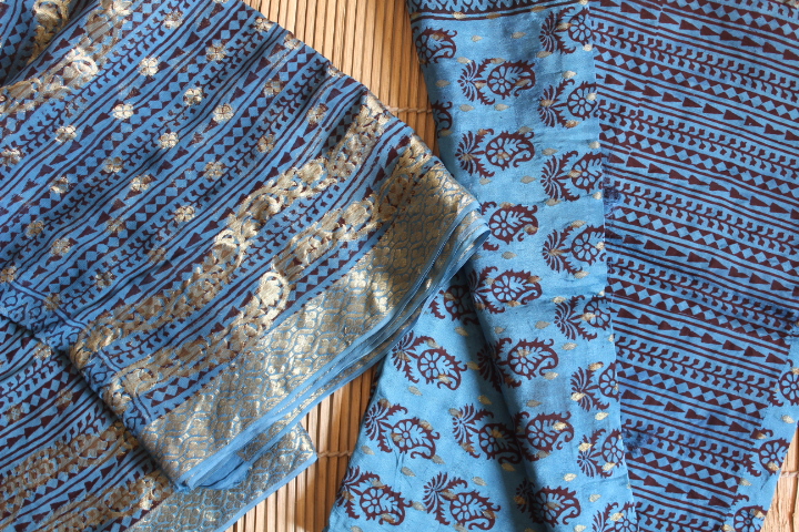 HandBlock Cotton Bagh Zari Suits(Three-Piece)